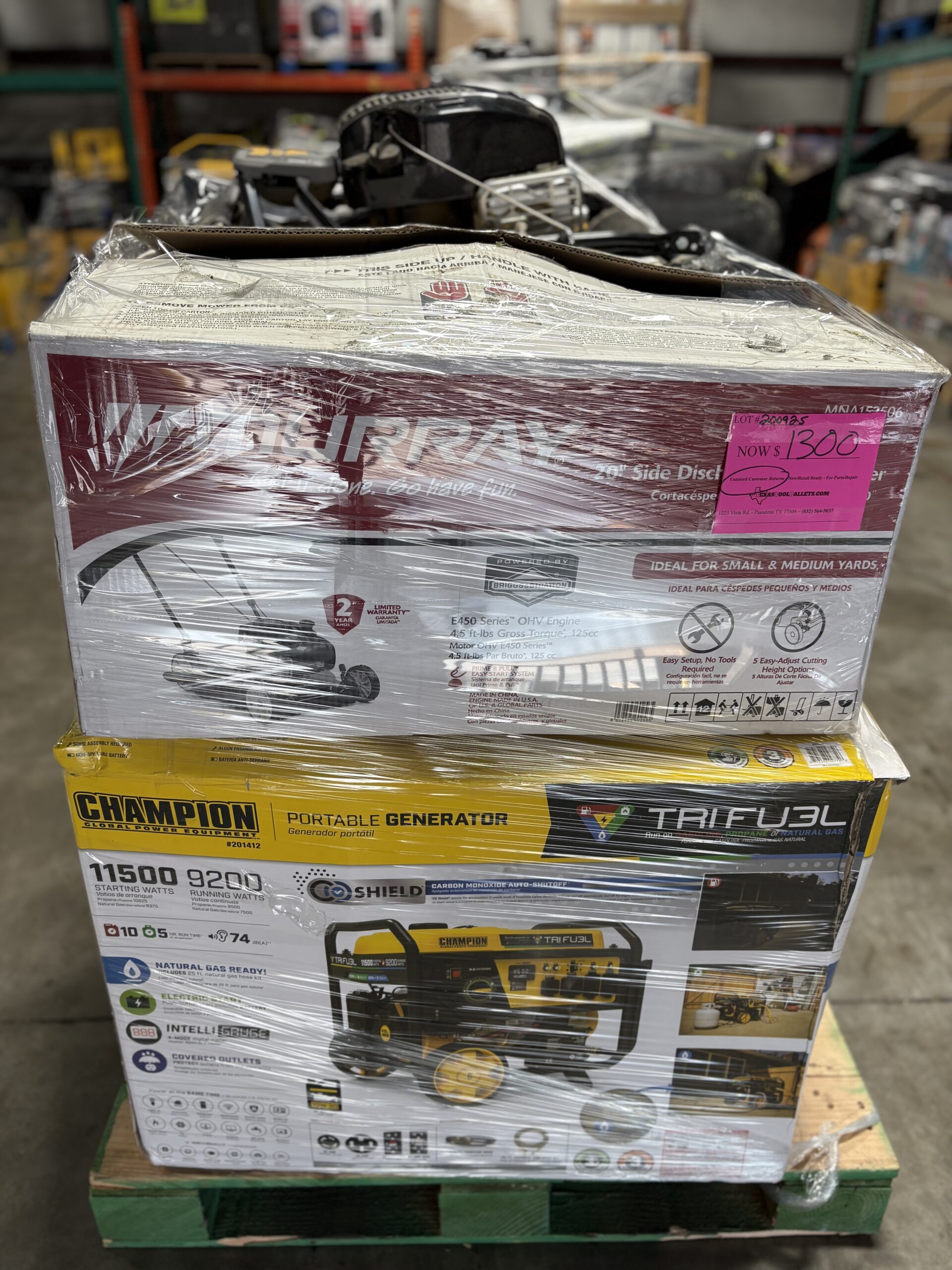 OUTDOOR POWER EQUIPMENT PALLET – LOT ID: 200925 – AS-IS Untested Customer Returns
